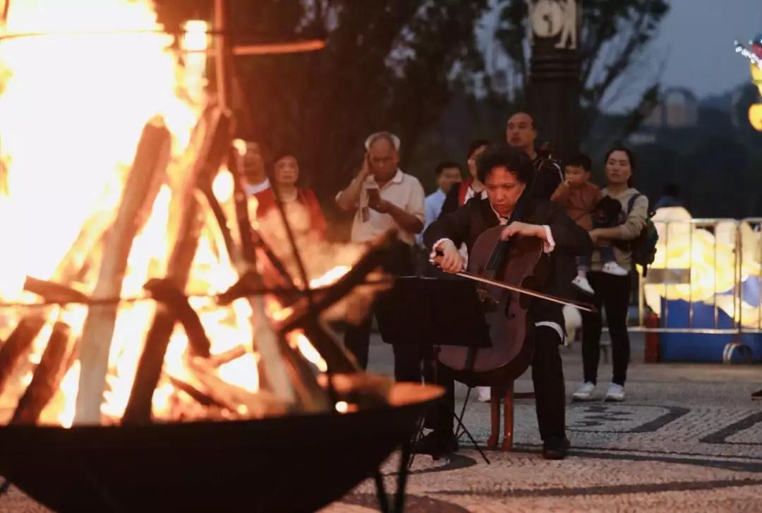 小编前往时,正好赶上朱亦兵在苗年广场上的演奏,演奏还没开始,所有的旅者全部都聚集了起来,耐心等候着演奏开始,在朱亦兵演奏了两首经典曲目后,围观的人们还是不愿散去,紧接着一首奥运主题曲《我和你》,将观众们的情绪带上了高潮。