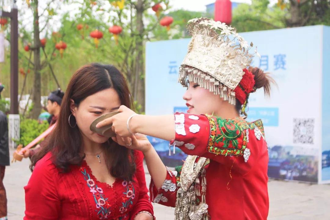 穿着盛装的苗族姑娘们,端起小酒杯,边舞边唱,一时间敬酒歌四起。