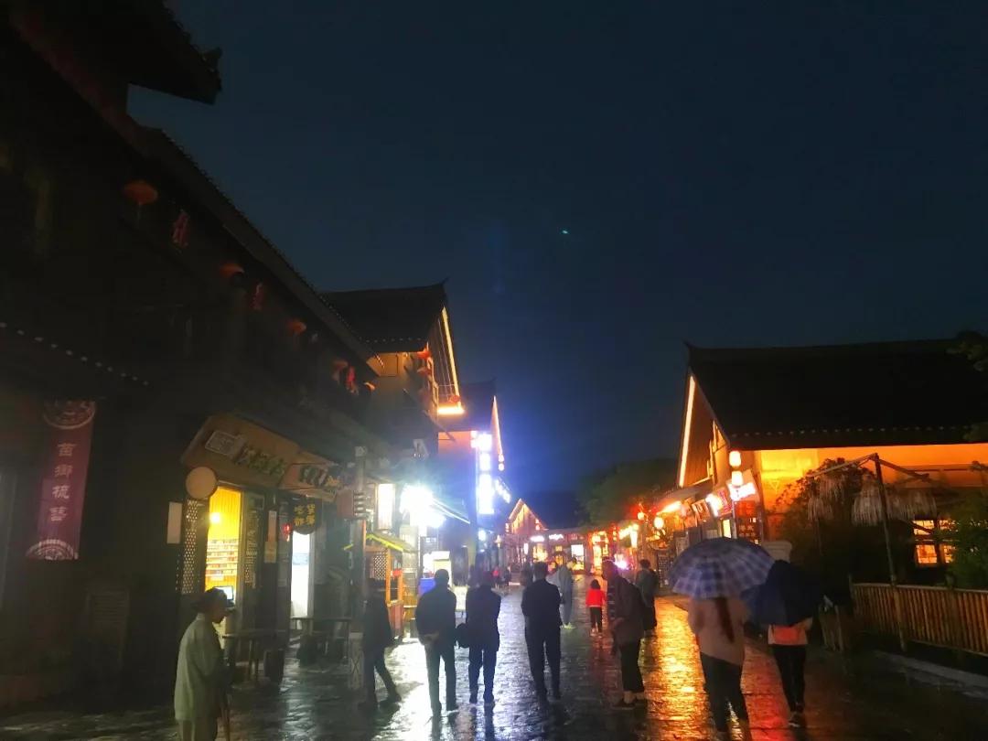街道上的店铺打开了灯光,远远望去,人们的热情丝毫没被雨水浇冷,大家或许和我一样,贪恋小镇的夜色吧。