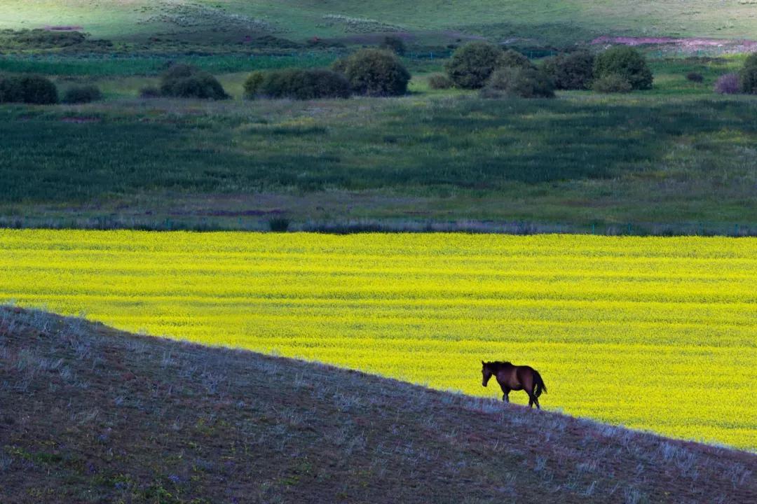 昭苏雪山下的油菜花开始慢慢苏醒;