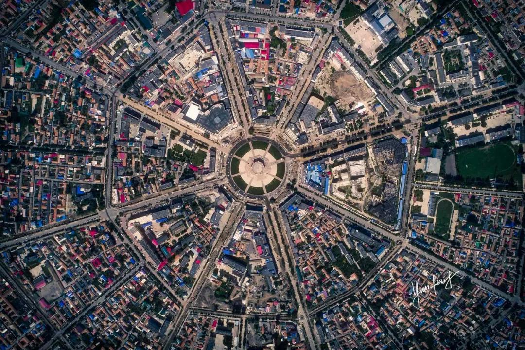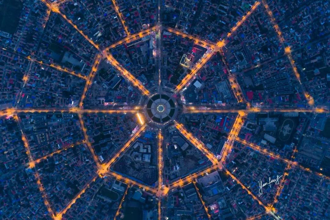八卦城是按照《易经》来建造的,以城区中心广场为“阴阳”两仪的太极图向外延伸,按照八卦方位向外辐射出8条主街,每条街长1.6公里,每隔360米设一条环道连通。