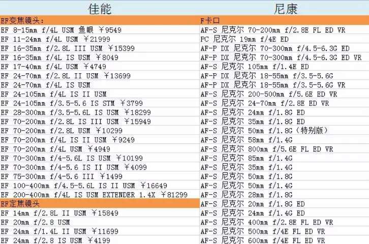 下面给大家整理了佳能、尼康目前在售的单反镜头,由此可见,厂商为了给广大摄影爱好者提供一个更好的摄影体验,也是牟足了劲。