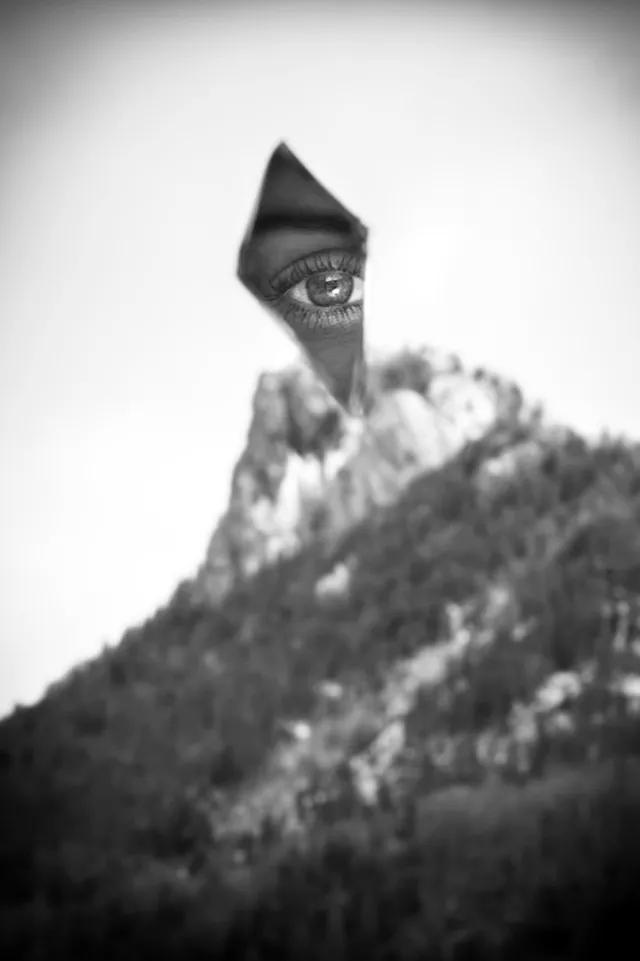 你也可以把窗户(或车窗)擦干净,把镜子碎片贴在上边,创造出“眼睛+风景”的蒙太奇镜头: