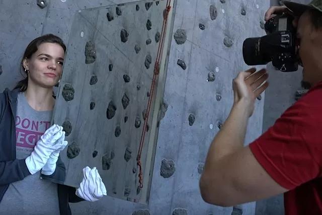 你也可以让拍摄对象的对面站另一个人,通过“双重反射”,把俩人的五官叠加在同一位置上,创造奇幻的效果。当然,你需要不断调整角度,才能实现这一拍摄目的。