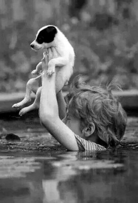 为了救落在水里的小狗,他甚至忘记了自己此刻也很危险。