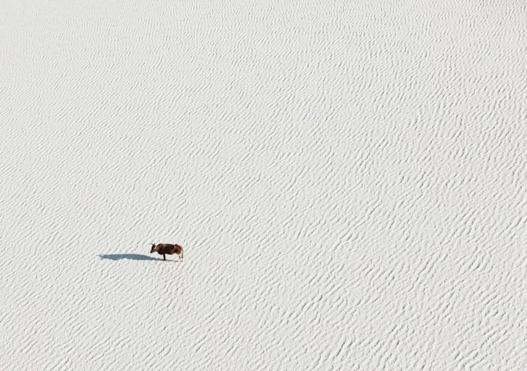 如火烈鸟、好望角大羚羊、甚至是一只在蔚蓝的海水中休息的乌龟。动物们行进时留下的痕迹和阴影都是他作品中重要的组成元素。