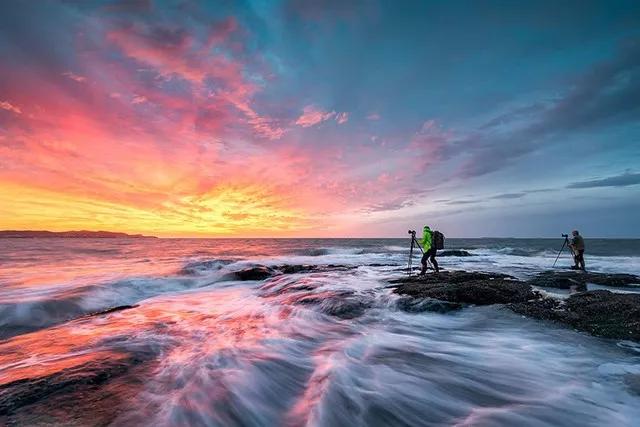 等太阳完全沉下地平线以后,也别急着马上走,这段时间虽然光线不足,但天空的色彩是最鲜艳的;随之而来的一个“蓝色时刻”,也是你出片的好时机。