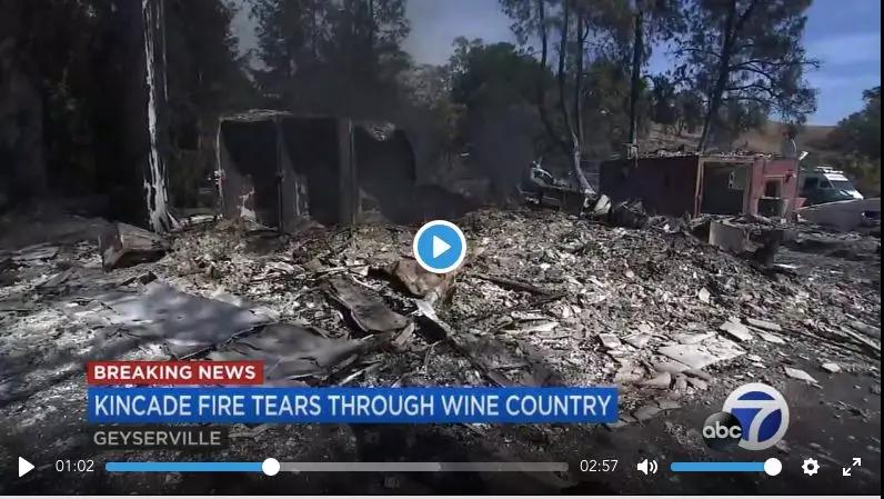 本次山火被称为:Kincade,于美国当地时间10月23日夜晚发生,火势猛烈,索多玛县北部上千名居民紧急撤离。至24日下午,火势持续蔓延,Geyserville县居民被迫疏散。加州州立大学、圣贝纳迪诺市也因为停电和大火在24日停课。