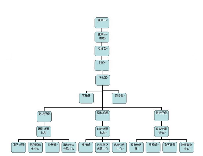 特色线路中心职责: 特色线路中心是公司对外的一个重要形象部门和窗口,复制散客接待、组织、线路推荐、旅行社安排等工作,制定和实施散客旅游计划。 |