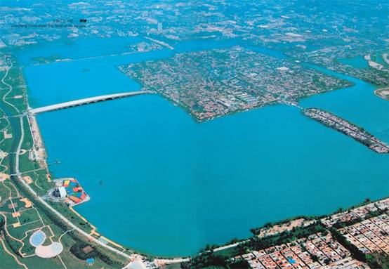 东昌古城即聊城古城,统称为山东聊城古城。东昌古城坐落在聊城市区内东昌湖中间,北宋时期的城垣。城呈正方形,总面积约100万平方米。城墙始建于宋熙宁三年(1070),初为土城。明洪武五年(1372),东昌平山卫指挥佥事陈镛改筑为砖城。城墙周长3.5千米,高11.7米,顶宽6.7米,基厚11.7米。内墙用三合土夯筑,外墙用砖石砌垒。城设4门,上筑门楼,外设瓮城。南、东、西瓮城为扭头门,南门东向似凤头,东、西门南向似凤翅,北门北向似凤尾,故名“凤凰城”。四城门楼皆重檐歇山,四角飞翘,东曰“春熙”,西曰“清远”,南曰“正德”,北曰“宣武”。明万历七年(1579),城墙上又建垛口2700余个、敌楼27座;4城门楼更名,东曰“寅宾”,西曰“纳日”,南曰“南熏”,北曰“锁钥”。各个城门均有水门、吊桥。城东北角、西北角原有“望岳”“绿云”2楼。城高大坚固,易守难攻,大有高屋建瓴、睥睨四邻之势,又有“能陷不失的凤凰城”之说。