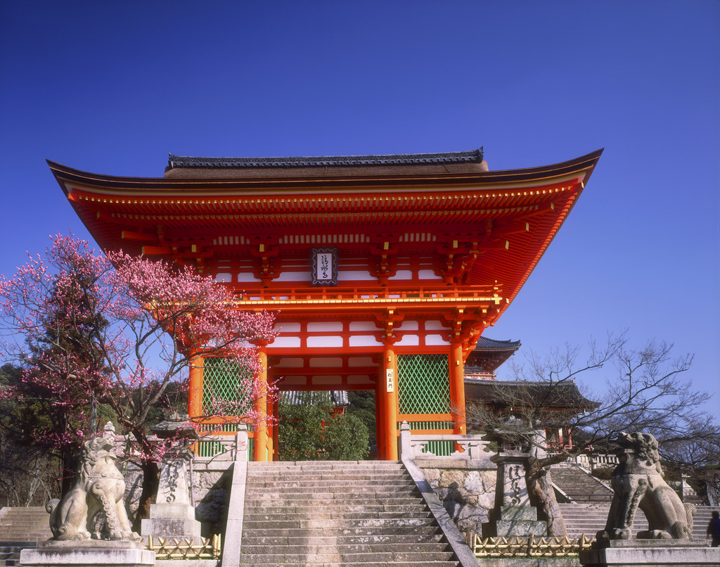 本堂的下方有著名的“音羽瀑布”,与祈求分娩顺利的“子安塔”,后者被列为世界文化遗产,清水寺建于音羽山上,为日本佛教北法相宗的总院。寺院周围是京都的名胜古迹,春天樱花盛开,秋天红叶似火。