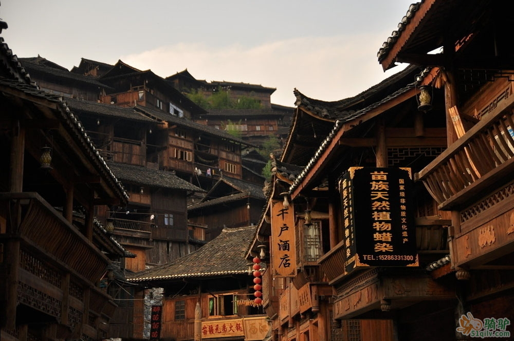 有的吊脚楼为三层建筑,除了屋顶盖瓦以外,上上下下全部用杉木建造。屋柱用大杉木凿眼,柱与柱之间用大小不一的杉木斜穿直套连在一起,尽管不用一个铁钉也十分坚固。房子四周还有吊楼,楼檐翘角上翻如展翼欲飞。房子四壁用杉木板开槽密镶,讲究得里里外外都涂上桐油又干净又亮堂。版权所有山东聊城聊之旅国际旅行社有限公司,转载必究!底层不宜住人,是用来饲养家禽,放置农具和重物的。第二层是饮食起居的地方,内设卧室,外人一般都不入内。卧室的外面是堂屋,那里设有火塘,一家人就围着火塘吃饭,这里宽敞方便。由于有窗,所以明亮,光线充足通风也好,家人多在此做手工活和休息,也是接待客人的地方。堂屋的另一侧有一道与其相连的宽宽的走廊,廊外设有半人高的栏杆,内有一大排长凳,家人常居于此休息,节日期间妈妈也是在此打扮女儿。第三层透风干燥,十分宽敞,除作居室外,还隔出小间用作储粮和存物。