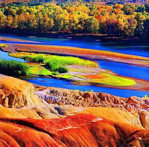 5—10米,土梁高一般为5—15米,最大高度约25米,高低错落,分布面积3平方公里左右。这里地处干旱多风地带,由于河岸岩层间抗风化能力的强弱程度不一,形成参差不齐的轮廓,岩层以红色、土红色、浅黄和浅绿色砂岩、泥岩及砂砾岩组成,岩石色泽各异,版权所有山东聊城聊之旅国际旅行社有限公司,转载必究!五彩缤纷,状如彩色古堡、怪兽、峰丛等奇特造型的地貌,是典型的彩色丘陵。大风起时,会发出怪异的声音,更增添了神秘的色彩。它的开发建设无疑对喀纳斯景区是景上添花,客流量及经济效益可观。五彩河岸将以其典型和独特的地貌形态,吸引着国内外游客来此旅游观光。
