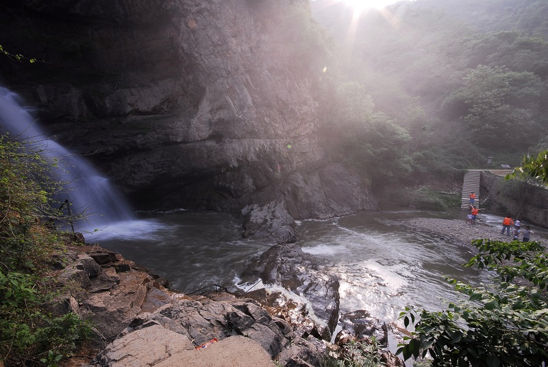 豫西大峡谷呈东西走向,象一条由西向东延展的飘带,总长度30余公里,宽度30米到50米,深度50米到200米,两侧山峰最高海拔1372米.最低620米。狭长而深邃的峡谷河流滩多水急,由大大小小99级瀑布及300多个潭池组成。每当汛期来临,潭上飞珠溅玉,雾气腾腾,声响如雷,气势磅礴;风和日丽时节,瀑布则如白练悬空皎美绝伦。漫步风景区,只见青山如黛、幽谷叠翠、银练飞泻、野花丛生,版权所有山东聊城聊之旅国际旅行社有限公司,转载必究!宛如一幅山水画卷,给人以极好的视觉享受和心理享受。峡谷内几处悬崖绝壁势如刀削,两旁植被丰茂,满谷苍翠,石峰形态各异,峰峰相连如画卷,畅游期间移步换景,别具风韵。每逢云蒸雾绕之时,山峰宛如空中楼阁,点缀于缥缈云海之间。