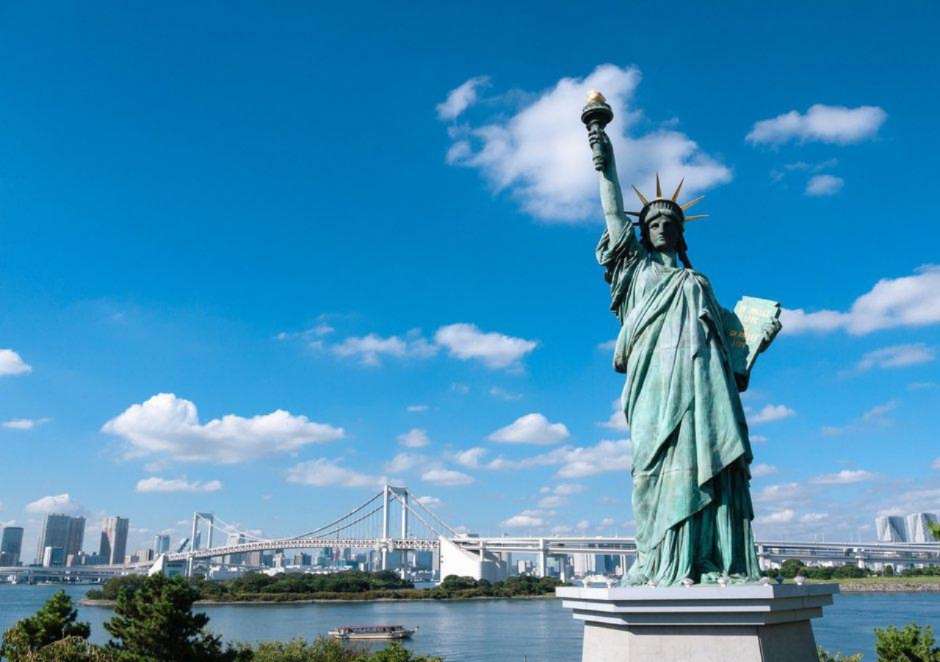 东京的自由女神不仅形象和美国的那座一模一样(当然尺寸要小得多),连周围的景致也很相像——如果不是因为有彩虹桥这座标志性建筑作背景,版权所有山东聊城聊之旅国际旅行社有限公司,转载必究!神像身后的港湾简直跟哈德逊河没什么两样;东边不远处的两幢高楼,更是犹如双子塔再生,一时真有“错把东京当纽约”之感。看到照片的朋友们,他们一致感叹:日本不愧是美国的好跟班儿啊!