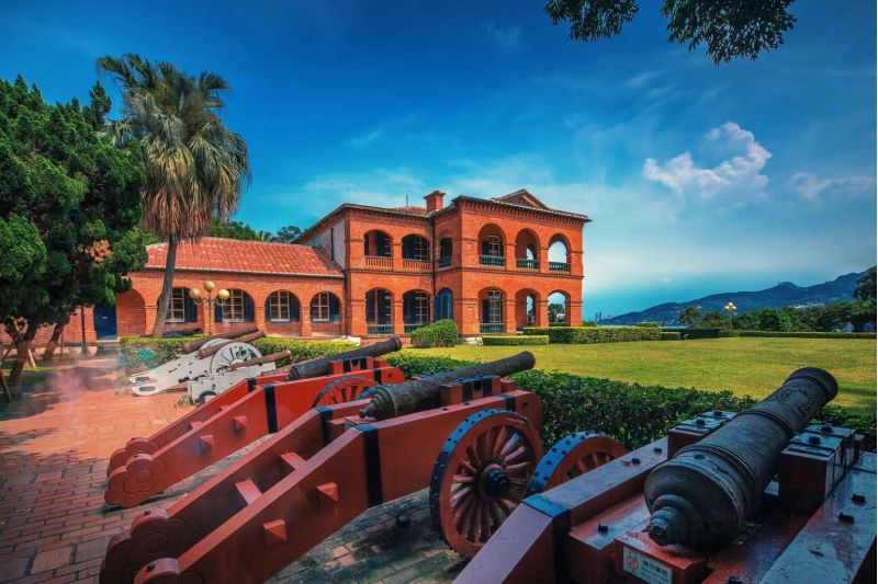 红毛城炮台城垣红毛城伫立在淡水街尾往淡海方向,高踞淡水河出海口的山巅,迄今已超过三个半世纪历史,是淡水最具历史意义的建筑,也是一级古迹。由西班牙驻军于明崇祯二年(公元1629年)所建,作为传教化民之地。后来荷兰人将西班牙人逐出淡水,重新修葺。当时台湾人都称荷兰人为红毛,故名红毛城。以后又被英国人和美国人占领。前后300多年的红毛城历史,是淡水最具历史文化意义的建筑,也是台湾多年来的沧桑缩影,现已列为台湾一级文物古迹。 红毛城古炮红毛城古迹区概指主楼、英领事馆及南城门等三处。主楼建筑呈正方形,长宽各50米,两层高10米,周围约7米,外壁有2米多厚,城内有1栋主楼、别墅及楼间的小宿舍;城外有4尊清朝嘉庆年间的旧式大炮。四周林木苍郁,庭园幽静。具有拱形回廊的英国领事馆就在旁边,外墙上仍可看见象征英国维多利亚时代的蔷薇饰砖,内部依旧时领事家居情形摆设,