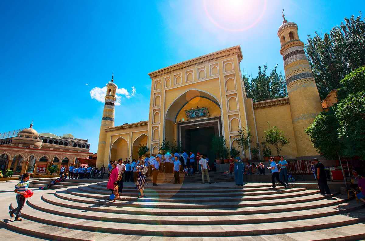 艾提尕尔清真寺坐落在喀什市解放北路,是中国最大、最著名的伊斯兰教清真寺,它以其悠久历史、雄伟建筑和民族特色闻名中外,在中亚地区与布哈拉、撒马尔罕等地的著名大清真寺齐名,已成为丝路明珠—喀什古城的地方象征而名扬中外。1962年7月11日被新疆维吾尔自治区人民委员会定为自治区文物重点保护单位。