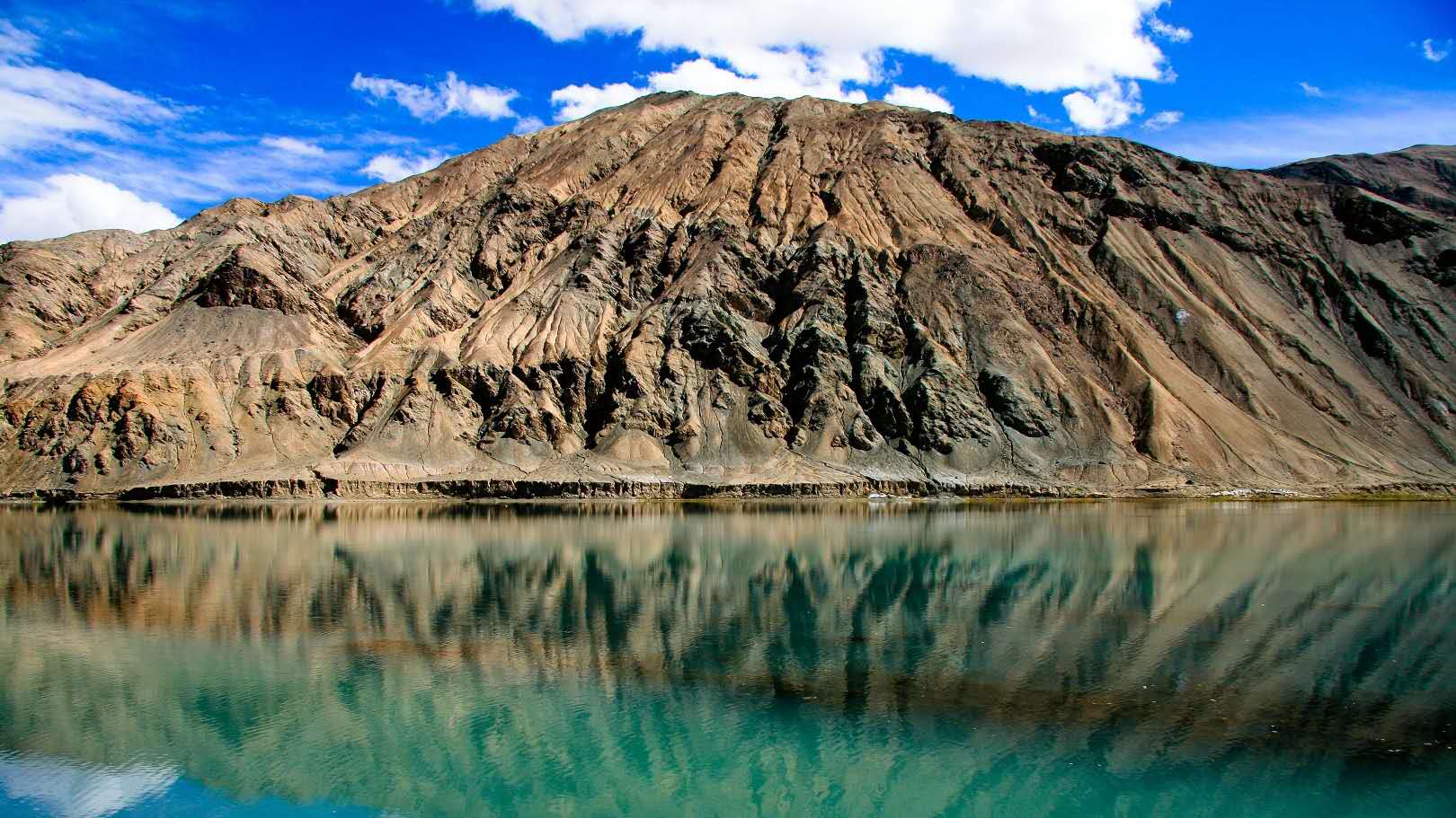 东帕米尔地形较开阔坦荡,由两条西北—东南方向的山脉和一组河谷湖盆构成,绝对高度5000米~6000米。相对高度不超过1000米~1500米,山体浑圆,山脉被宽浅的河谷分割,在海拔4000~5000米高处有冰碛平原和荒漠平原。