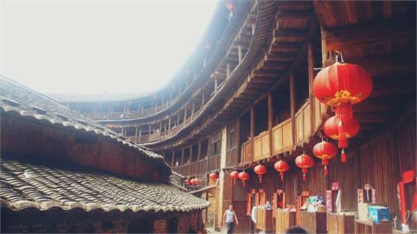承启楼里有一副堂联:“一本所生,亲疏无多,何须待分你我;共楼居住,出入相见,最宜注重人伦。”所描绘的正是一楼人和睦相处、其乐融融的动人情景。