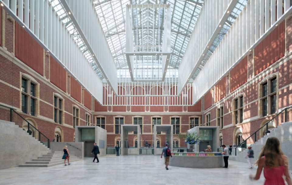 欧洲著名博物馆。在阿姆斯特丹博物馆广场。荷兰王室为了防止所收藏艺术品散失,1800年在海牙设立皇家艺术展览室。路易·波拿巴为荷兰国王时,将其迁至阿姆斯特丹并增加了收藏,1808年建立博物馆。1885年建造新哥特式风格的新馆,入藏了行会、大公、市民的藏品。该馆设 260多个陈列室,分绘画、雕刻、装饰工艺、荷兰历史、亚洲艺术、版画等部门展出。其中,绘画部门所占比例最大,是该馆的核心部门。绘画以17世纪荷兰画派作品为主,有伦勃朗的《夜巡》、《母亲像》,J.维米尔的《看信的女人》、《小巷》以及F.哈尔斯等人的杰出作品。从中可了解荷兰绘画发展的全貌。装饰工艺部门有12~20世纪欧洲各地的家具、陶瓷、金属器、玻璃器、染织品等。同时,还有反映17世纪荷兰人生活情况的景观。荷兰历史部门除介绍本国历史文物外,还介绍与荷兰东印度公司有关的地区,如非洲、马来西亚、印度尼西亚等地的家具和各种用具,从中可见荷兰发展海上贸易的情况。亚洲艺术部门有中国瓷器、日本屏风和刀剑、印度尼西亚的湿婆神青铜像等,都是极为名贵的藏品。版画部门有欧洲最精美的版画、素描、彩饰手稿本和宣传画等,其中有A.丢勒的作品、伦勃朗的素描和1000多幅铜版画、日本浮世绘等。