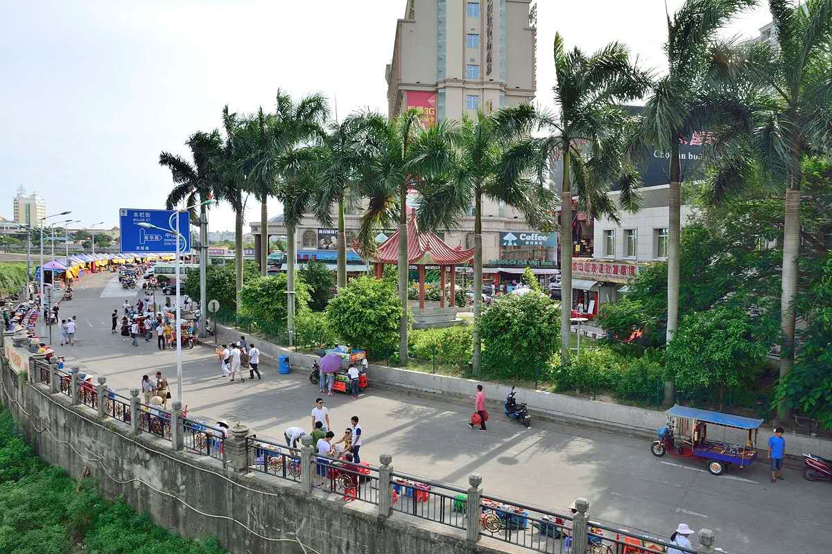 芒街与我国的东兴市之间仅隔一条北仑河,从东兴出境,跨过不足百米长的北仑河大桥即进入越南芒街。