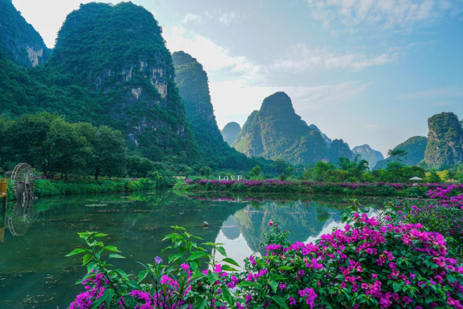 阳朔十里画廊位于阳朔月亮山,因沿路风景秀丽,如诗如画,被称为阳朔十里画廊。
