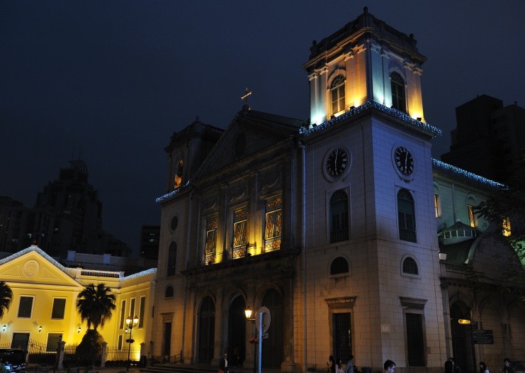 位于大堂前地,主教座堂又称大堂或大庙,历史悠久。始建于1567年,本为一幢小型木造的建筑,经过多年的风雨剥蚀,残破不堪。1849年,天主教集众捐款,重新改建,今日的外型初具规模。1937年,大堂再次改建为三合土建筑,才构成了今日壮丽堂皇的外观。此景点已于2005年7月列入世界遗产,成为中国第卅一处世界遗产。