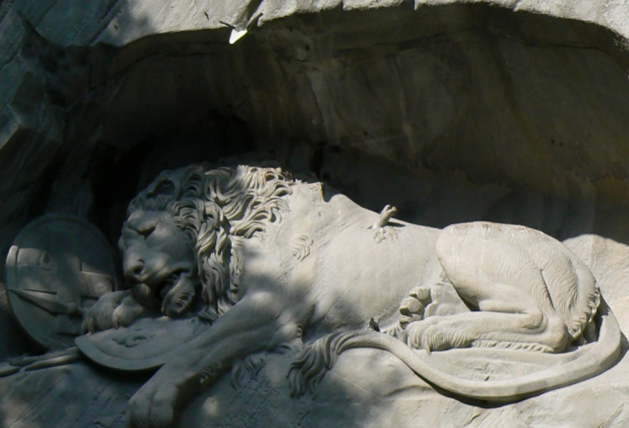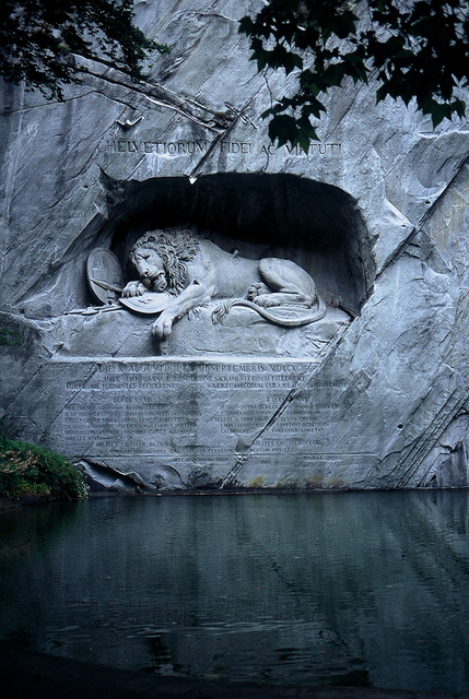 狮子纪念碑(Lion Monument)是琉森(卢塞恩)数一数二的雕刻作品,一支箭深深地插进了濒临死亡的雄狮背上,狮子面露痛苦的神情,前爪按盾牌和长矛,盾牌上有瑞士国徽。