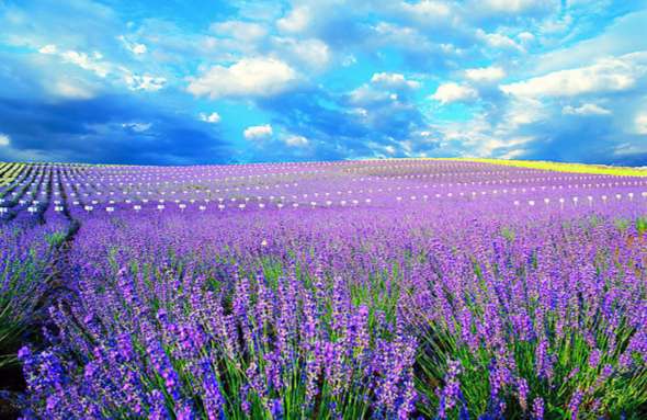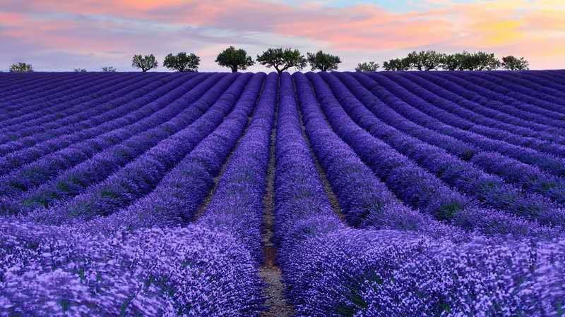 普罗旺斯暮色:夕阳与红霞漫天散开,光影糅合大片花海,只能用震撼形容了!银色、紫色、金色、绿色、红色层次分明,胜似天上人间!