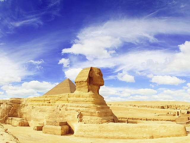如果不说金字塔是世界奇观,就不能说是到过了埃及。从开罗西行数公里,来到吉萨村前。在便屹立眼胡夫金字塔东侧,便是狮身人面像,它以诱人的魔力,吸引了各地的游客。“怪物”--斯芬克斯狮身人面像的头像,真的是以胡夫作模特儿的吗?不过比较可惜的是狮身人面像的鼻子被打破了,有损美观及协调性。