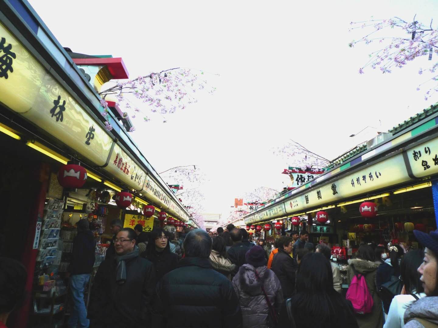 仲见世商业街从雷门延伸到浅草寺主要场地,大约250米长。两旁分布有超过50家的商店,出售地方特产和一些普通旅游纪念品。