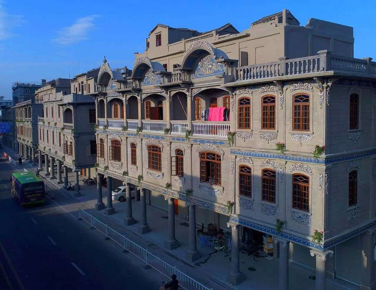 这种欧陆建筑与东南亚地域特点相结合的一种建筑形式可以挡避风雨侵袭,挡避炎阳照射,造成凉爽环境,因此在东南亚十分风靡,随后也传入华南地区。骑楼是我国福建、广东、海南、广西等沿海侨乡特有的南洋风情建筑,都是当年华侨从南洋返乡所建。