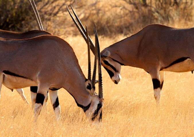 从肯尼亚雪山上流经到地势低的桑布鲁的伊瓦索尼罗河(EwasoNyiro)是桑布鲁的生命之源,当地人称之为桑布鲁之水(WaterSamburu),因为水的颜色呈棕色,又称之为棕色的水(Brown;Water),也正是因为这条宝贵的支流,给干旱的桑布鲁增色不少,在这里,随处可见成群的大象在河边嬉戏,鳄鱼在泥水里懒洋洋的沐浴日光浴,成群的河马匍匐在河中,当然这些动物在肯尼亚其他地区也可以看到,但是桑布鲁所特有的五大动物(BIGFIVE)是极其罕见的,葛式细纹斑马(Brevyzebra),东非剑羚(Beisaoryx),蓝腿索马里鸵鸟(Somaliostrich),网状长颈鹿(Reticulatedgiraffe),长颈羚(Gerenuk)。这里多达380余种的鸟类同样吸引着鸟类学家的眼球,象犀鸟,非洲食鱼鹰等。