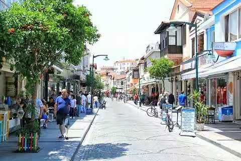 小镇中心以酿酒和葡萄酒酿造闻名,葡萄酒工厂遍布切什梅半岛地区,大大促进了旅游开发,精品酒店,风帆冲浪尤为出名。