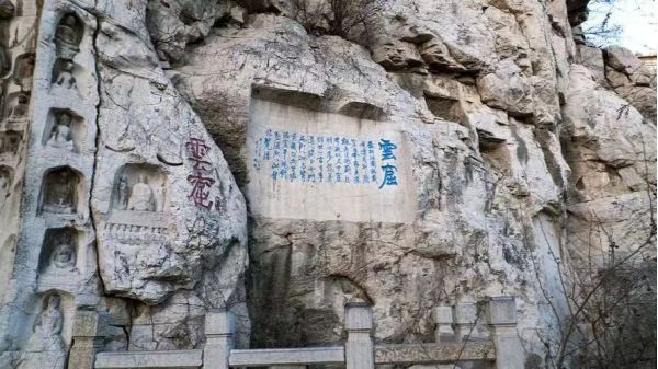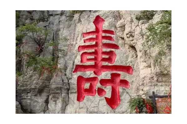 山阴处海内外罕见的巨大镌刻"寿"字是“寿比南山”典故的出处,该字结构严谨,端庄大方,坐南朝北,通高7.5米,宽3.7米,单是下部的"寸"字就高2.22米,为大个头的汉子所不及,故当地有"寿比南山"、"人无寸高"之说。这个"寿"字是明嘉靖年间衡王府内掌司冀阳周全所献书。端详此"寿",字体挥洒俊逸,笔划圆泣流畅,虽千凿百斧雕成,却不露分毫痕迹,充分体现了劳动人民的聪明智慧,是书法石刻艺术的瑰宝。自此,青州官民,朝野上下,去云门山拜寿的人络绎不绝,已有400余年的历史了。众从的中外游客都把能到云门山参拜大寿字作为自己最大的心愿。