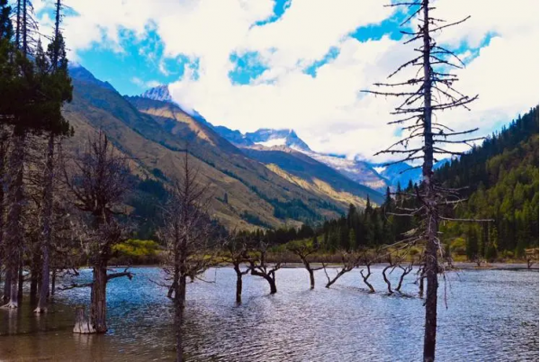 从五色山向沟内走约里许,群山慢慢向两边退去,沟越走越宽,沟内长着形状奇特的沙棘树林这就是双桥沟八景之一:盆景滩。盆景滩长约三里,宽约数十米,由两大片组成,中间夹了一个珍珠滩。盆景滩中长着数以千计的百半沙棘古树。又高又大的沙棘树枝头或盘曲,或异伸,既有虬髯老松的苍劲,又含园林盆景的秀美,而又不失其挺拔雄壮。