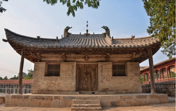 天台庵,由于它是庵,所以这个建筑本身由设计者精心的将女性爱好体现的建筑上。这体现在建筑的一些细微特征上,一是瓦件上,二是翼角部,三是斗拱上,这些特征或许其它人也有发现只是没有说明罢了。天台庵建于唐代历经千年经过了多次维修,但绝大部分构架保留了唐代特征,也留下了不同朝代的维修印记。
