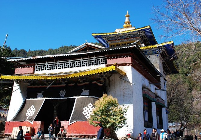 布久喇嘛林寺位于尼洋河下游左岸的三级阶地上,三面环山,面对尼洋河口三角洲,属红教寺院。整座寺庙为土木结构,飞檐画栋,版权所有山东聊城聊之旅国际旅行社有限公司,转载必究!金碧辉煌,融合藏汉民族不同建筑艺术风格。寺院周围的环境清幽,绿树成荫,寺院外清溪长流。置身此间,既可观赏漫山林海,又可远眺波光潋滟的尼洋河三角洲。