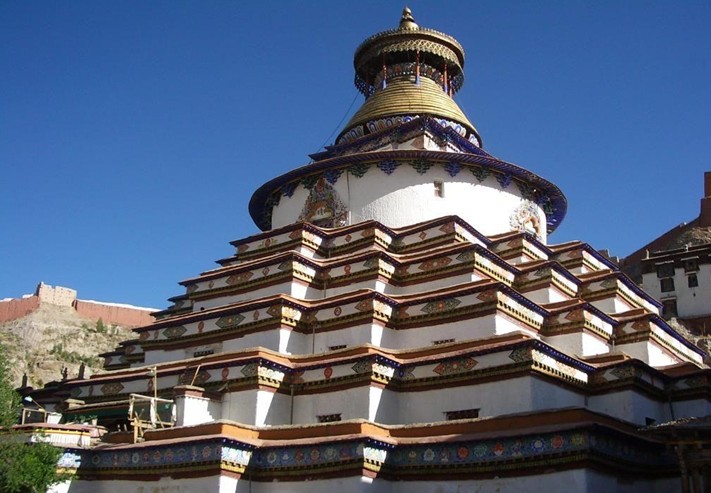 白居寺,海拔3900米,位于江孜县城东北隅,距拉萨南约234公里处,距日喀则东约100多公里处。白居寺是汉语名称。藏语简称“班廓德庆”,意为“吉祥轮大乐寺”。白居寺始建于明宣宗宣德二年(1427),历时10年竣工。有人说是1418年由克珠杰和热丹兖桑帕二人共同修建的。