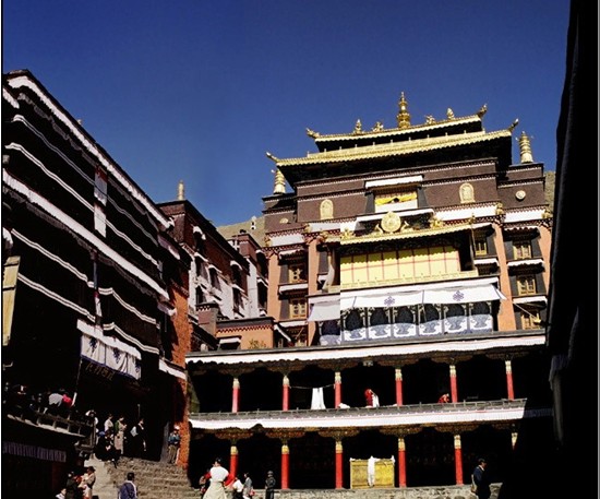 于公元1615年由多罗那他主持修建。原信奉觉朗派,到五世达赖喇嘛执政时期,该寺属13座寺庙换教寺之一,故信奉格鲁派。寺院曾有35个殿堂和一个诵经大殿,3300名僧人,并在寺庙的山顶处修建了94间高9层的达耶拉塔卧室。寺内保存有大量珍贵的老壁画和镀金铜佛像,如生威金刚、时轮金刚、胜乐金刚等164件。版权所有山东聊城聊之旅国际旅行社有限公司,转载必究!还珍藏着四大宝:一是土布瓦?喜绕坚赞的拐杖,约1米长;二是达耶拉塔的手杖,据说是蒙古人所赠,手杖上雕刻有蒙文、藏文、龙等,约1.2米长;三是多罗那他的法钹,相传闻其声便能解脱苦海;四是一对宝石,一个形如鸡蛋,呈白色,上面有天然形成的咒语和雍仲图案,另一个形如杏仁,上有一道白线。
