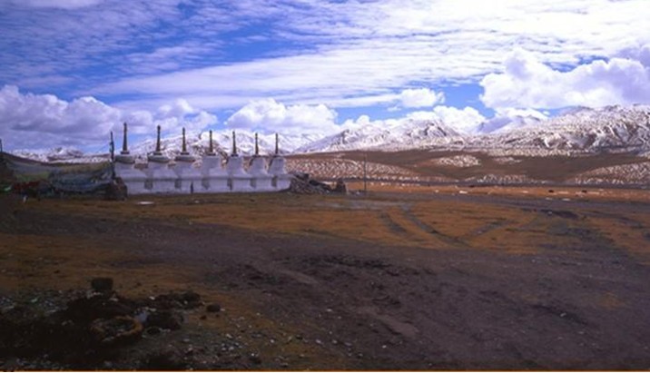 位于青藏公路当雄至那曲约三分之一段路旁,苍茫的大草原上兀立这一组塔群使草原又带上了几分神秘悲壮色彩。据传当年格萨尔王曾率兵在这里驰骋征战,他旗下的一名大将夏巴战死于此。为表彰夏巴的功勋,格萨尔修筑八塔安葬夏巴。