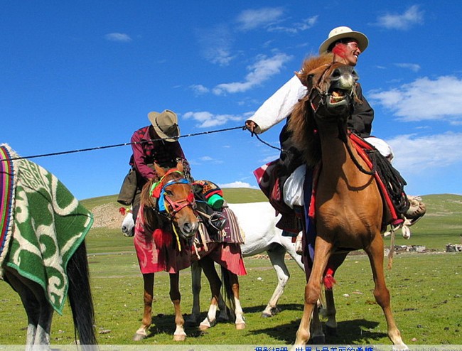 最为引人注目的是牧民的节日盛装,特别是少女和中年妇女的穿着,她们大多着华丽昂贵的藏袍,头上、颈上、手上、腰上到处挂满了饰品,走起路来叮当作响。尤其是在一年一度热闹非凡的恰青赛马会上,整个羌塘草原的骁勇与彪悍完完全全地展现在白云和蓝天之下,那像珍珠一样撒落在草原上的顶顶帐篷,那像金子般清脆亮丽的阵阵歌声,以及格萨尔传说与现代流行歌曲融洽相伴的种种和谐,止不住您也要歌之舞之,唱之颂之。