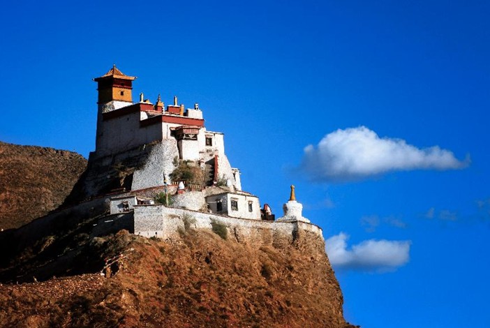雍布拉康位于泽当11公里的扎西次日山上。“雍布”意为“母鹿”,因扎西次山形似母鹿而得名,“拉康”意为“神殿”。雍布拉康是西藏历史上第一座宫殿。据史书记载始建于公元前二世纪。松赞干布暑期由宫殿改作寺庙。文成公主初来西藏时每到夏季都会和松赞干布来这里居住。至五世达赖时又在原碉楼式建筑基础上修了四角攒尖式金顶,并将其改为黄教寺院。