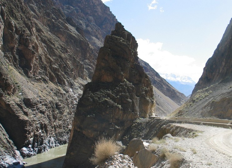 怒江在青藏高原上流淌,宛如一条绿地毯上的蓝飘带。进入藏南八宿前后,她便进入深不可测的高山峡谷。从海拔3000多米一降再降,降到海拔700余米的深槽。