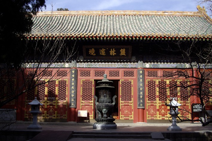 卧佛殿,寺内主殿,面阔三间,单檐歇山顶,黄色琉璃瓦,檐下为五彩斗栱,顶棚有彩画天花。门额前檐大匾“性月恒明”,为慈禧所题。两侧楹联:发菩提心印诸法如意,现寿者相度一切众生。佛殿内上方有匾额“得大自在”,为乾隆皇帝所书。“得大自在”是释迦牟尼一生的写照,生前和死后都得到最大的自由。版权所有山东聊城聊之旅国际旅行社有限公司,转载必究!“性月恒明”则把佛性比作月亮,光辉永照。