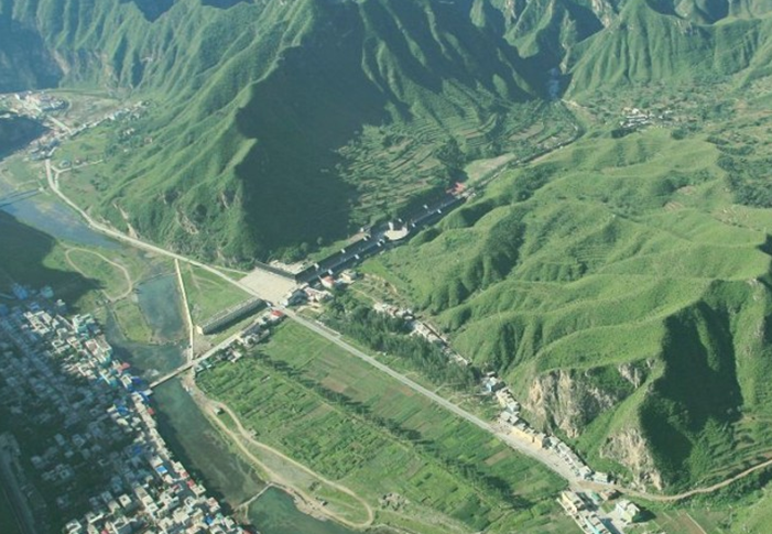 百里峡正门是汉城堡,这是一座仿汉建筑,它采用了抬梁式和穿斗式的建筑风格,是为了拍摄电视剧《三国演义》中“空城计”一出戏所建的外景,现以成为我们出入景区的显著标志。
