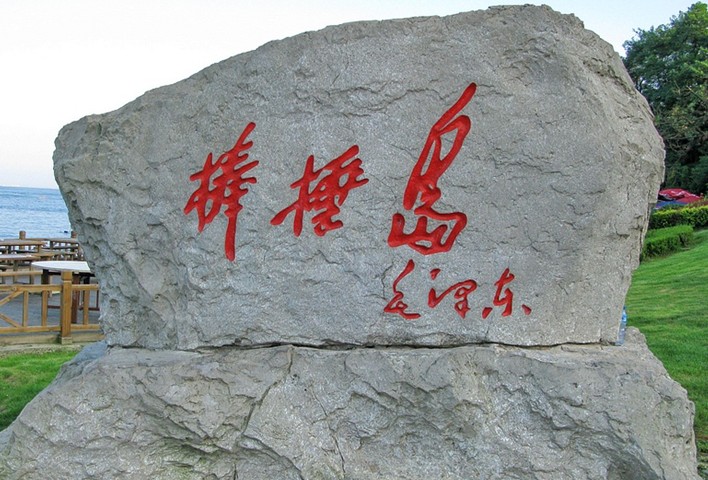 叶帅诗词与毛主席诗词基本格调比较相似,所不同的是,毛主席的诗词博大精深,长于大笔挥洒勾画,叶帅的诗词开阔昂奋,以摄取特写镜头见长。因此,毛主席平时就喜欢叶帅的诗词,称赞“剑英善七律”,尤其十分欣赏气势恢弘、寓意深刻的《远望》这首诗。毛主席不仅能准确地背诵,而且在1965年12月26日72岁诞辰时,欣然命笔把这首诗抄赠给前去探望他的儿子岸青与儿媳邵华,版权所有山东聊城聊之旅国际旅行社有限公司,转载必究!激励他们努力学习马列主义,学习老一辈革命家的斗争精神。毛主席的这一手书,恣意纵横,一气呵成,其布白、字体无不体现出他老人家书法的惯常神韵,不拘一格,大气磅礴,给人一种耳目一新、身心顿受强烈震撼的感觉,其中“棒棰岛”三个字,不啻此作中的生花妙笔。1977年4月6日,毛主席手书《远望》在《人民日报》第一版公开发表,同时还刊有《叶剑英同志关于毛主席手书〈远望〉诗的说明》和毛岸青、邵华的文章《重读〈远望〉志更坚》。 1995年底至1996年上半年,大连棒棰岛宾馆对入门处进行整修,建立大框门面,门梁上选用什么字体?有人想到毛主席抄录的叶帅诗中有“大连棒棰岛”字样,便委托负责工程施工的大连盛大建筑装饰有限公司临摹下来,放大镶嵌上去。可是,毛主席抄录《远望》诗时没有落他自己的名字,为了让所有注意棒棰岛宾馆大门的人都知道这几个字系毛主席所写,便从别处选取毛主席题词的落款“毛泽东”三个字补缀上去。