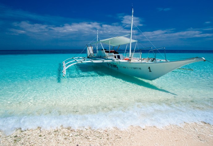 从马尼拉到薄荷大约飞一小时。快到的时候从几千米高空中俯瞰下去,真是美得令人窒息——简直就是一块镶了莹绿边的硕大美玉!绿边是绿色清澈的海水。美玉的光辉来自大片的白色沙滩。