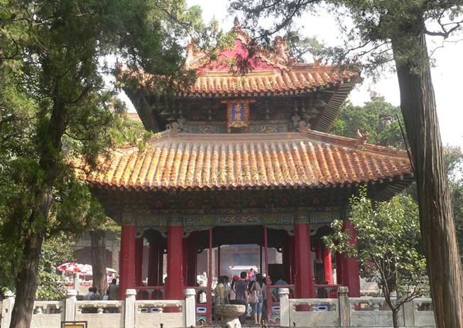 杏坛是孔子教育光辉的象征,位于大成殿前甬道正中,传为孔子讲学之处,坛旁有一株古桧,称“先师手植桧”。杏坛周围朱栏,四面歇山,十字结脊,二层黄瓦飞檐,双重半拱。亭内细雕藻井,彩绘金色盘龙,其中还有清乾隆“杏坛赞”御碑。亭前的石香炉,高约1米,形制古朴,为金代遗物。版权所有山东聊城聊之旅国际旅行社有限公司,转载必究!该坛建于宋代,四周环植以杏,故名;金代又于坛上建亭。明代后期重修,即今日杏坛。