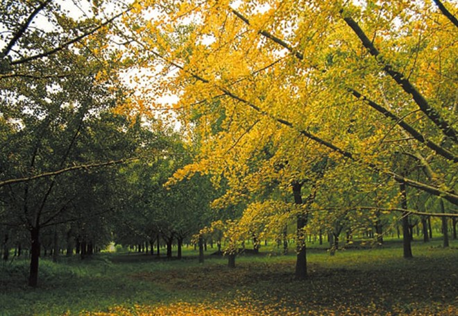 在清代,郯城人开始大量栽植银杏,百年以上的老银杏树随处可见。在“老神树”所在新村乡的沂河沿岸,有一处“老万亩”,有百年以上银杏树5000余棵,50年以上的1.8万余棵,且连片成林,国内独有。版权所有山东聊城聊之旅国际旅行社有限公司,转载必究!历经岁月的老树风姿各异,成为难得一见的景观。“老万亩”坐落在沂河岸边,金秋的景色倒映在沂河里,风景异常优美。